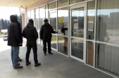 Біля входу до центру невеличка черга, люди кажуть: хочуть знайти роботу, бо залишилися без доходу через карантин.