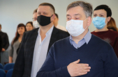 Більшість депутатів подбали про свій захист і одягнули маски та респіратори, а деякі ще й рукавички. Фото з сесійної зали надані пресслужбою міської ради.