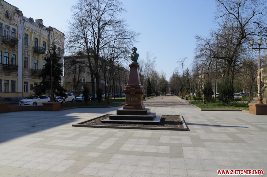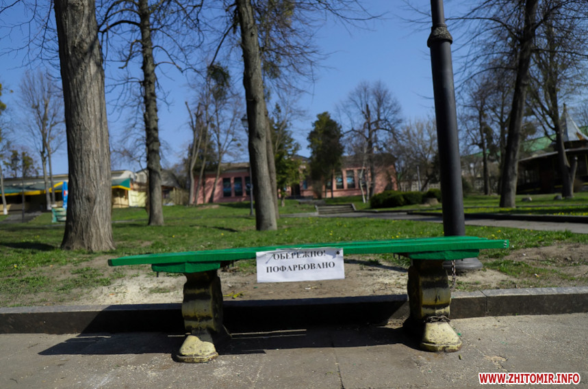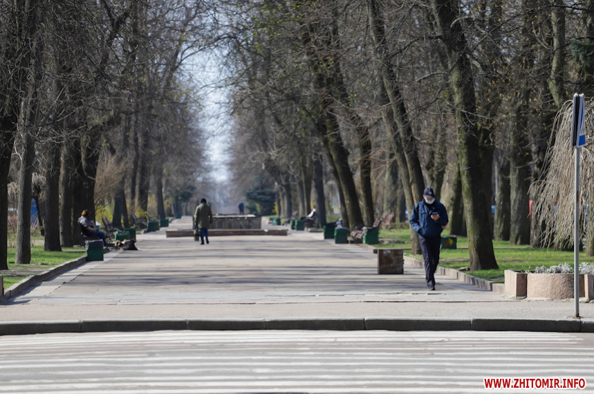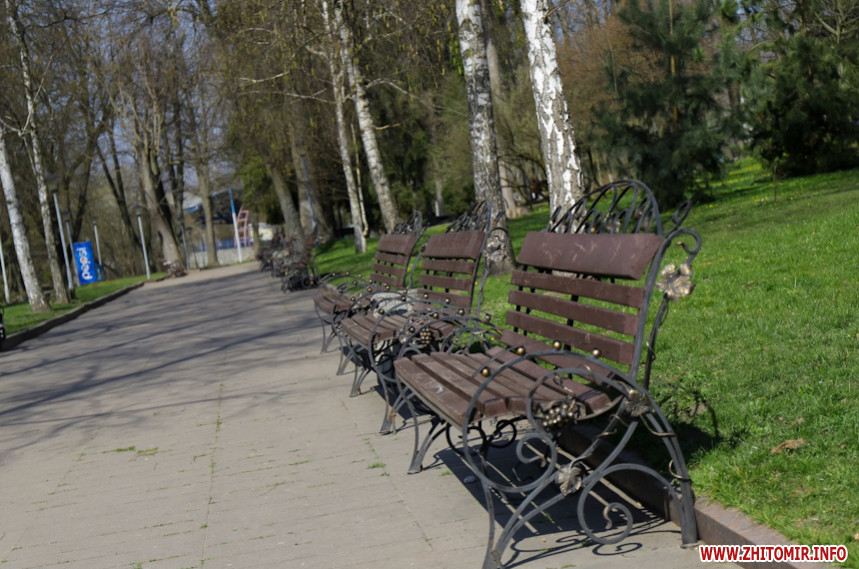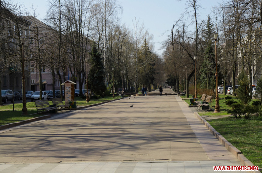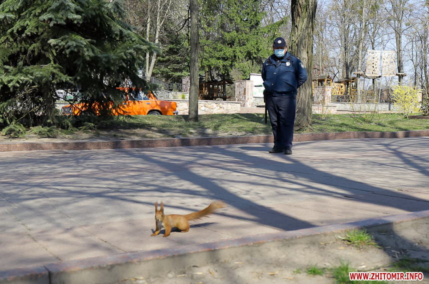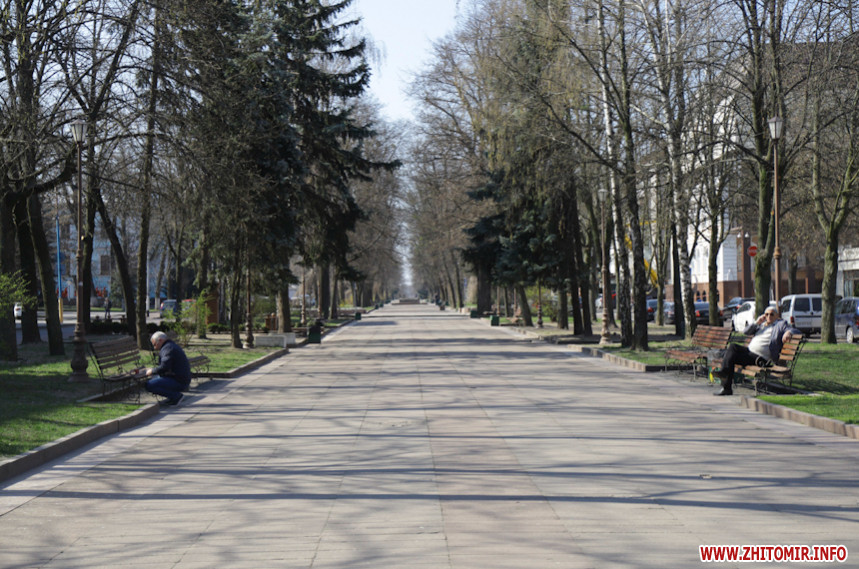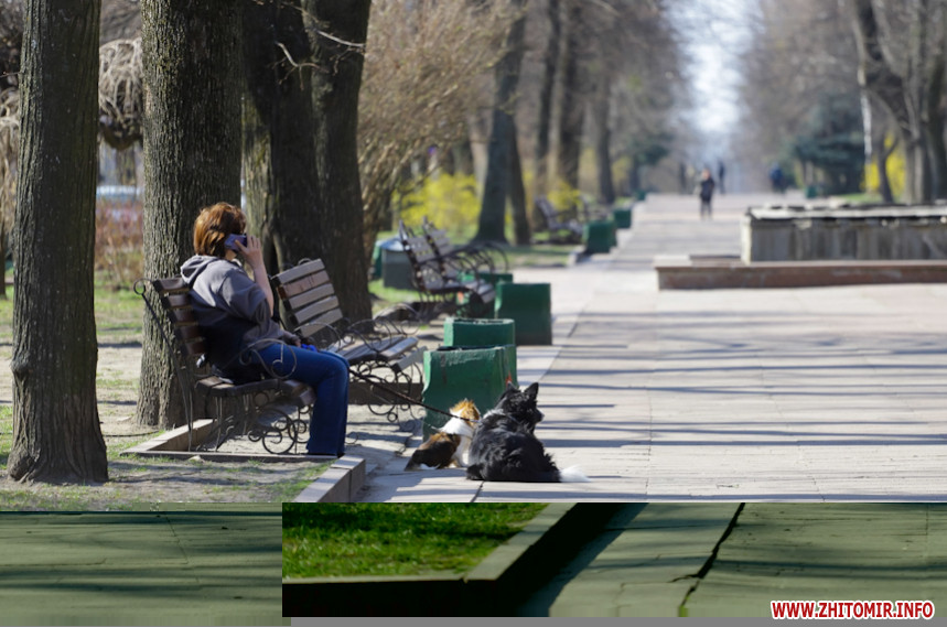Поодинокі перехожі з песиком, а то й двома, правоохоронці та білки, які вільно розгулюють на «очищеному» від людей просторі, – такий вигляд 8 квітня мала алея Старого бульвару. Місце, яке завжди є велелюдним, особливо в такі теплі дні, нині порожнє. Безлюдно і у парку Гагаріна, лише робітники виконують будівельні роботу з реконструкції набережної біля Тетерева.