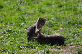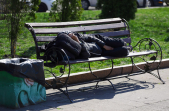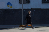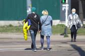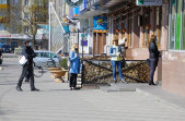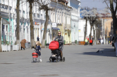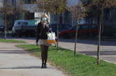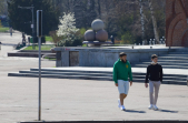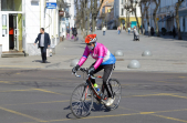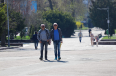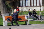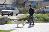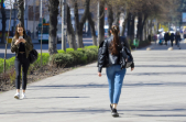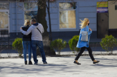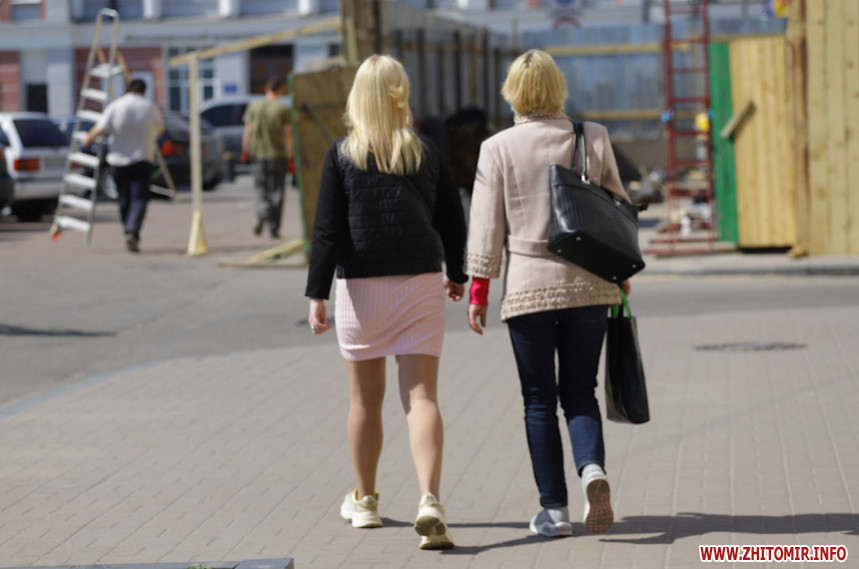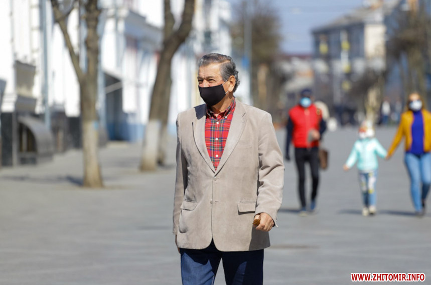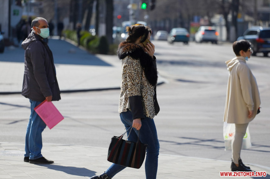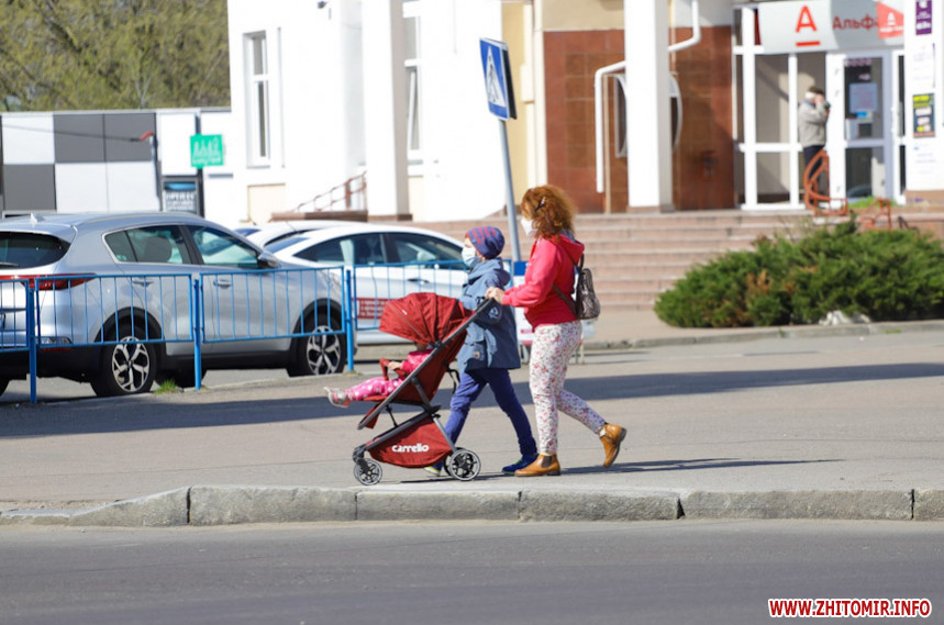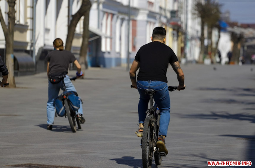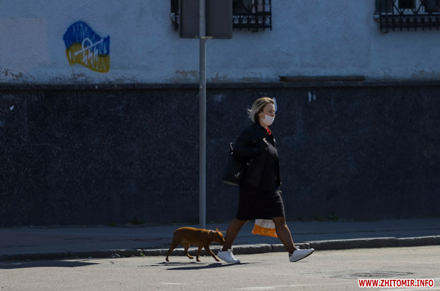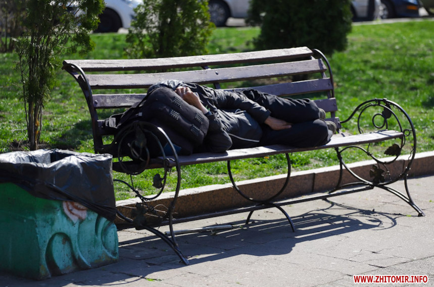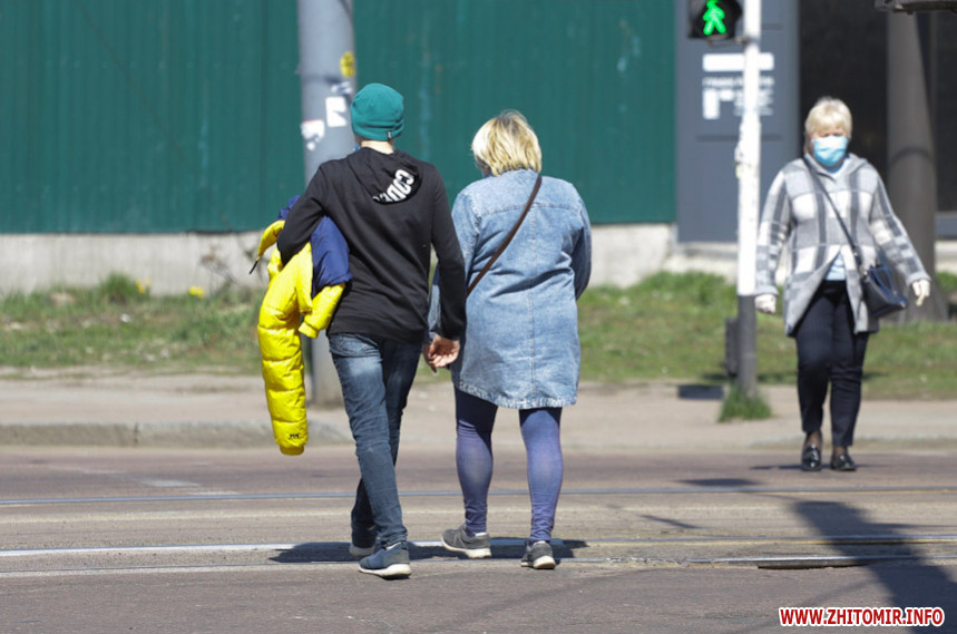 Щоправда, вдень 9 квітня у центрі Житомира було доволі людно: хтось поспішає у справах, а дехто присів на лавочку та приймає сонячні ванни. Радіють теплу і тварини: кішки муркочуть і бавляться на мякій траві.