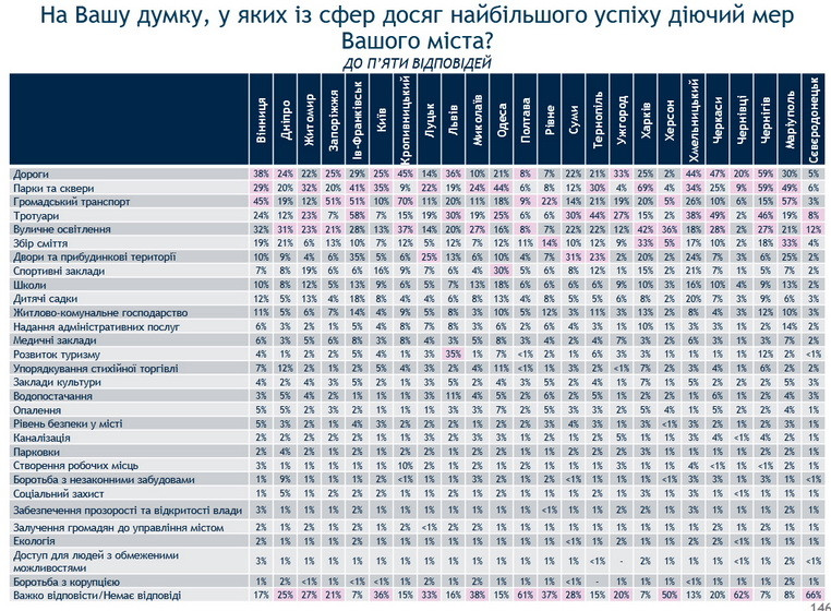 Найбільші сфери успіху нинішнього мера Житомира, це парки та сквери, тротуари й вуличне освітлення, а для його наступника пріоритетними мають бути: медичні заклади, житлово-комунальне господарство та створення робочих місць. До речі, ці напрямки входять в п’ятірку пріоритетних для усіх обласних центрів України.