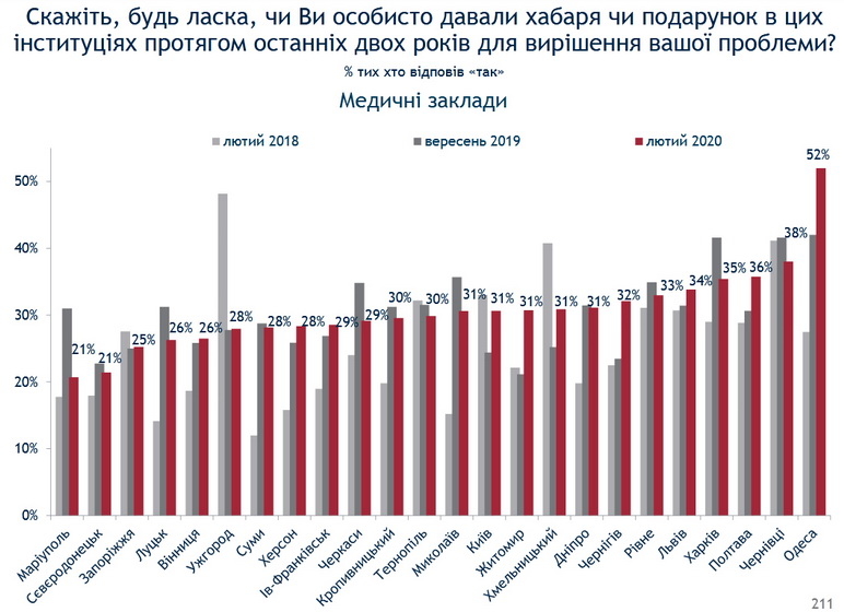 У Житомирі також значно зросла кількість тих, хто давав хабарі чи подарунки у медичних та освітніх закладах.