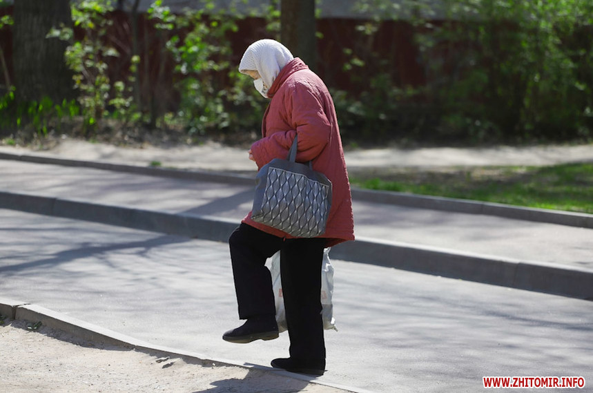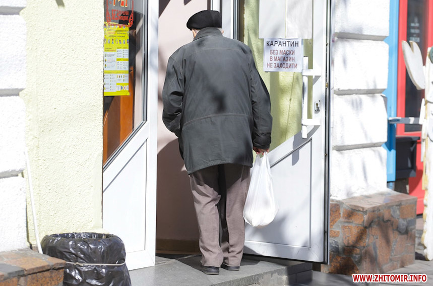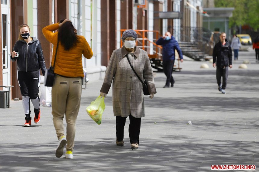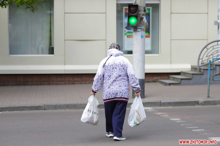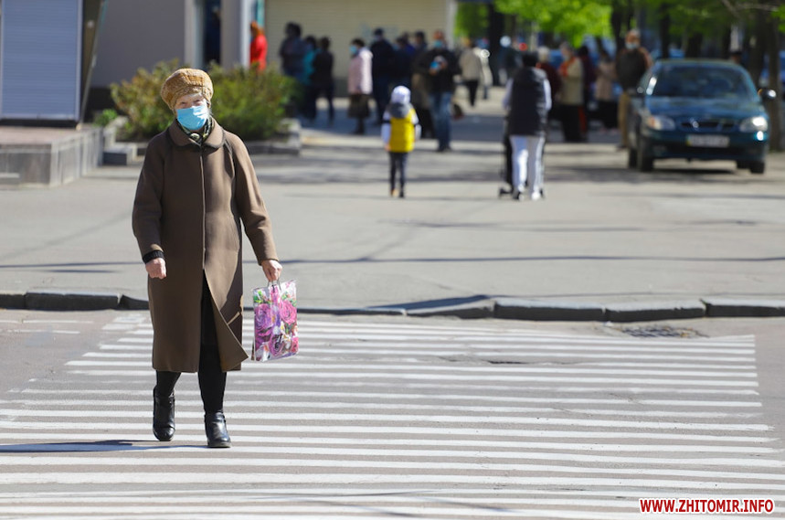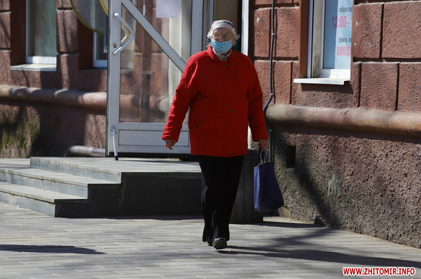 Незважаючи на це, на вулицях Житомира щодня можна зустріти бабусь та дідусів, більшість з них йдуть з пакетами чи сумками, очевидно, з продуктових магазинів, аптек або з пунктів прийому комунальних платежів. Майже всі вони у захисних масках, а дехто і в рукавичках.