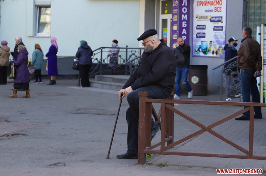 Як повідомляв Житомир.info, 23 квітня 2020 року в мікрорайонах Житомира біля банків та поштових відділень були довгі черги, в яких стояли переважно пенсіонери, а якраз людям поважного віку уряд рекомендував самоізолюватися. Житомиряни розповідали, що прийшли, аби отримати пенсію чи заплатити за комунальні послуги.