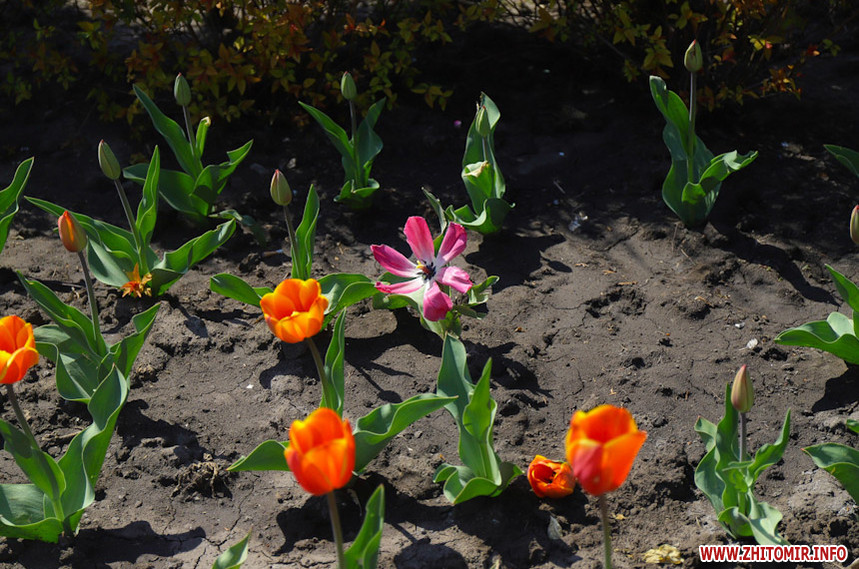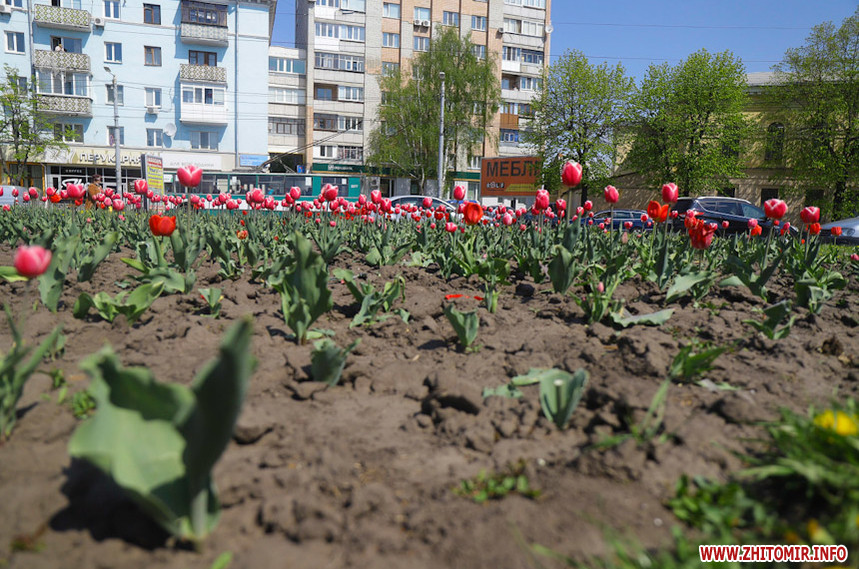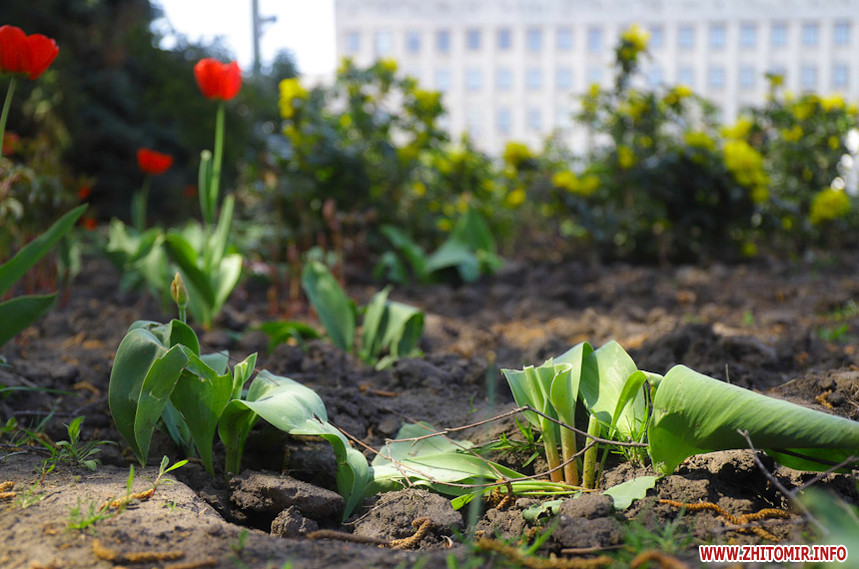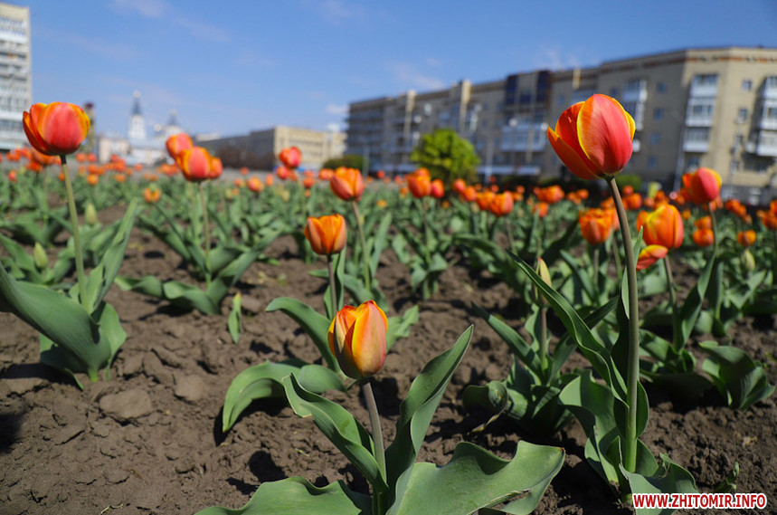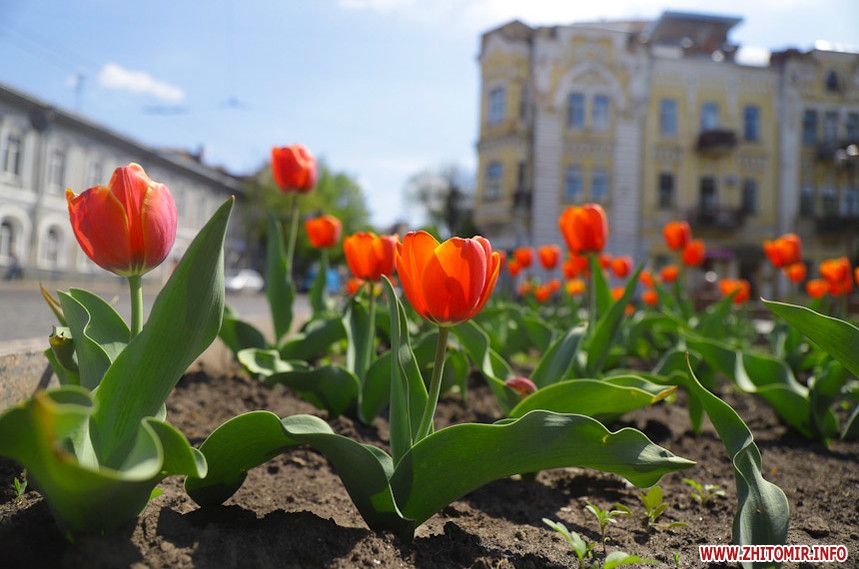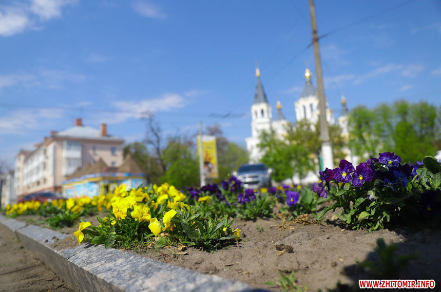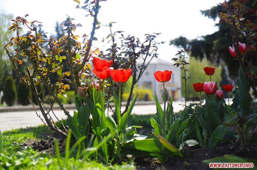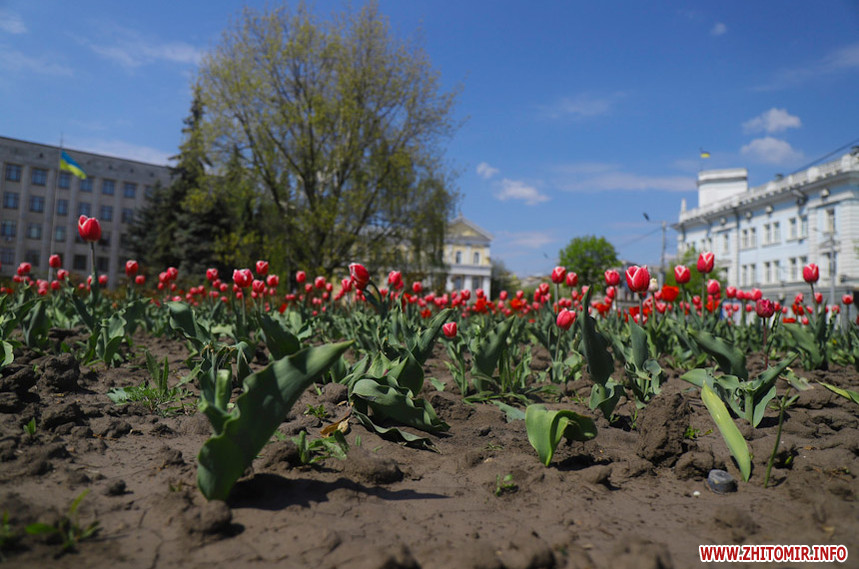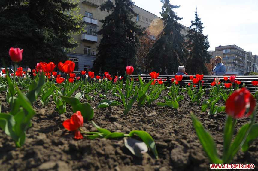 У Житомирі справжня весна. Дерева зеленіють, пташки співають, на клумбах розцвіли різнокольорові тюльпани та фіалки, а от житомиряни продовжують залишатися вдома на карантині, який продовжили до 11 травня.