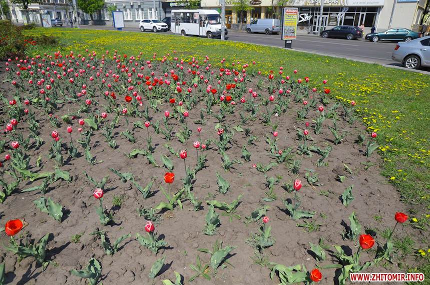 Не обійшлося і без крадіжок. На клумбах біля міської ради видно, що зрізали десь третину тюльпанів.