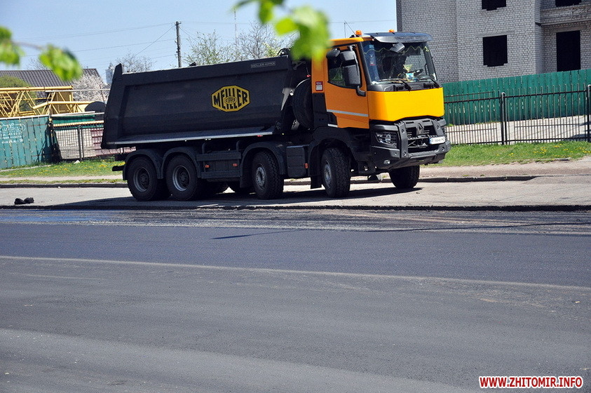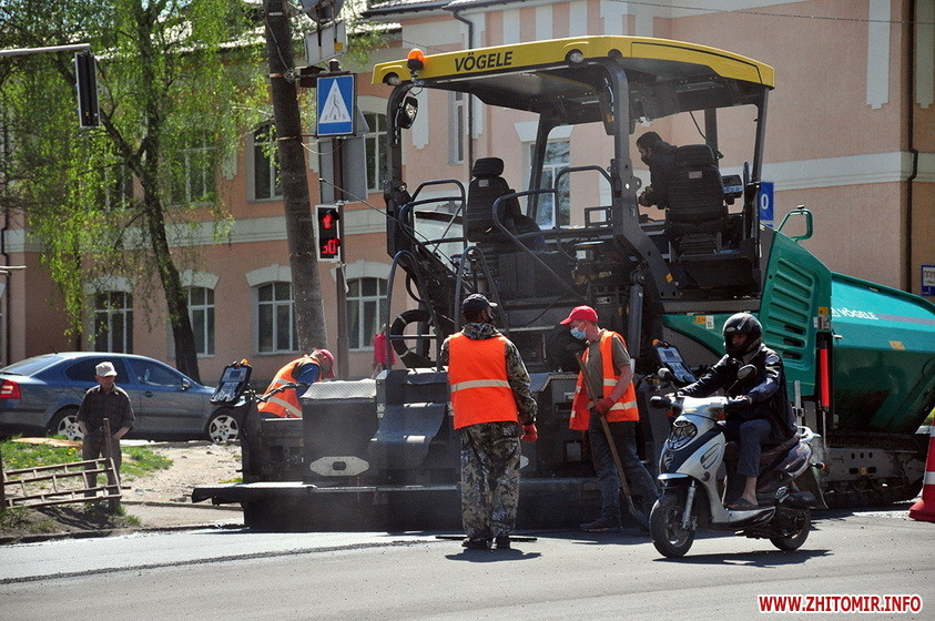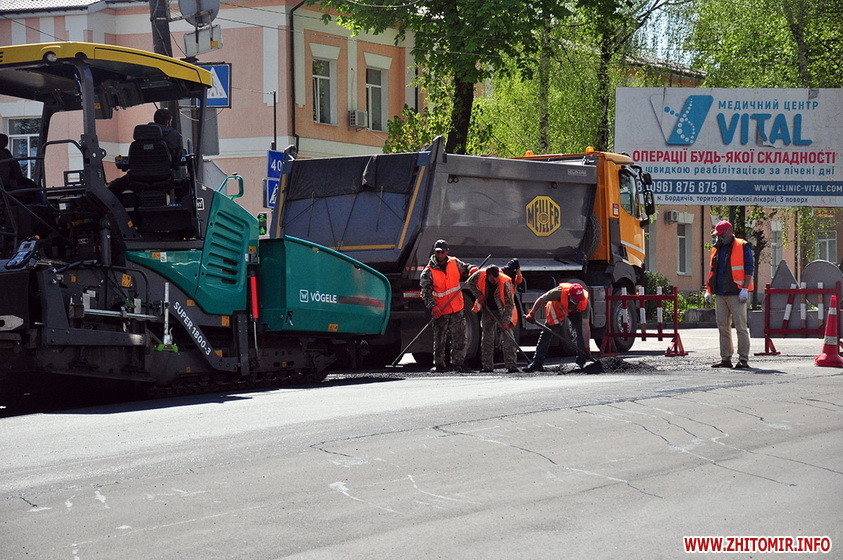 Станом на сьогодні по вулиці Житомирській виконані такі роботи: демонтували 208 пог. м бортових каменів; влаштували вирівнюючий шар асфальтобетонного покриття площею 16000,0 м²; переклали 15 шт. горловин цегляних колодязів з люками. На цій дорозі мають ще влаштувати асфальтобетонне покриття площею 4984,0 м²; встановити 208 пог. м бортових каменів; перекласти 3 шт. горловин цегляних колодязів з люками. На виконання всіх робіт з Державного дорожнього фонду спрямовано 8660,5 тис. грн. Завершити всі роботи з капітального ремонту дорожнього покриття вул. Житомирської у м. Бердичеві повинні до 1 липня 2020 року.