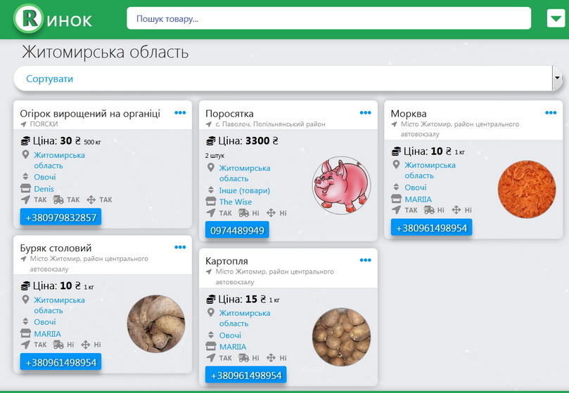 «На спеціальному інтерактивному сайті https://rynok.in.ua/ фермери з усієї України зможуть розмістити інформацію про власну продукцію, а споживачі легко її знайти. Проєкт некомерційний, тому користування платформою є безкоштовним», - зазначалося у повідомленні.