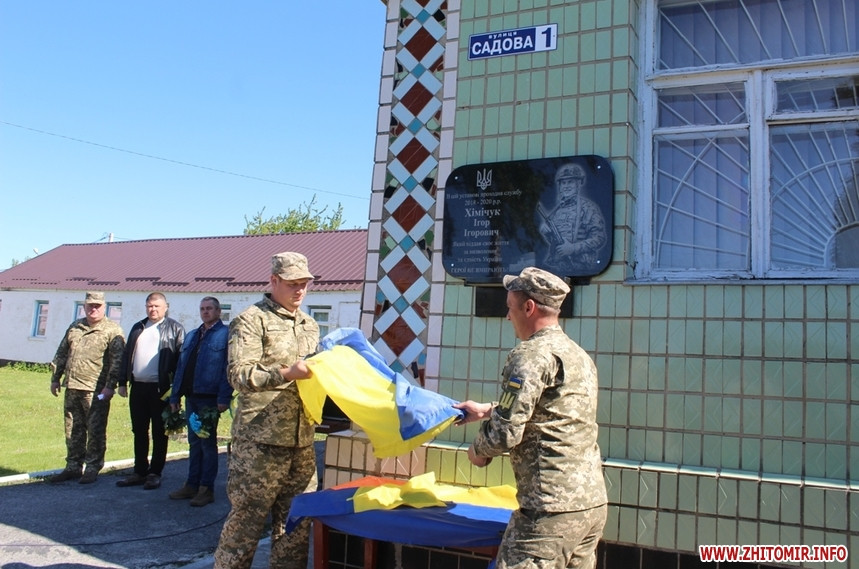 18 травня у Чуднові відкрили меморіальну дошку водію відділення забезпечення райвійськкомату Ігорю Хімічуку, який загинув у зоні ООС в січні 2020 року.