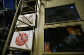 Організаторка виставки Альона Сердечна, розповідає, що не хотіла, щоб роботи висіли на стіні, а хотіла побачити їх у просторі, тож обрала таку локацію.
