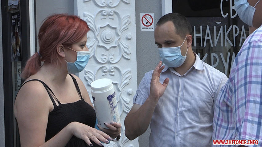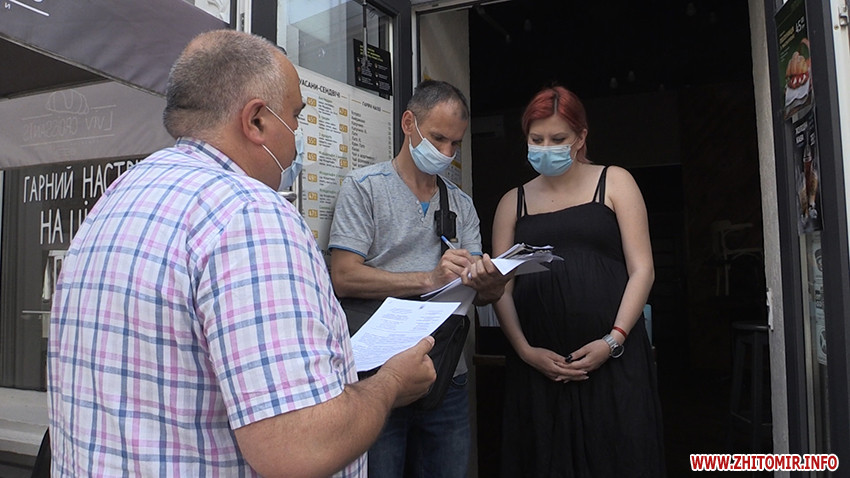 «На сьогодні є цілий ряд обмежень щодо функціонування, є певні вимоги щодо надання послуг населенню в закладах громадського харчування. Тому ми хочемо впевнитися, чи дійсно дотримуються цих вимог суб’єкти господарювання. В постанові головного державного санітарного лікаря №32 чітко виписаний перелік питань, на які ми спираємось і яких ми вимагаємо. Але й нічого зайвого від суб’єктів господарювання ми не просимо. В першу чергу – температурний скринінг персоналу: покажіть термометр, журнал запису і так далі. Друге питання – це дотримання гігієни. На вході повинні бути антисептичні засоби для відвідувачів, повинна зберігатись дистанція між клієнтами. На сьогодні дозволено приймати їжу і пити каву лише на відкритих майданчиках, в приміщенні поки робити цього не дозволено. Тому є певні обмеження щодо замовлення продукції, щодо її виносу і таке інше. Ну, і звісно ж, ми звертаємо увагу на дотримання персоналом протиепідеміологічних заходів: носіння масок, рукавичок, дезрежим обов’язково, які препарати використовуються, скільки разів миється посуд, куди утилізуються рукавички», – розповідає головний спеціаліст відділу санітарно-епідеміологічного нагляду та організації розслідування спалахів головного управління Держпродспоживслужби України в Житомирській області Віктор Павлік.