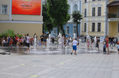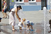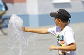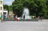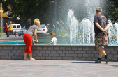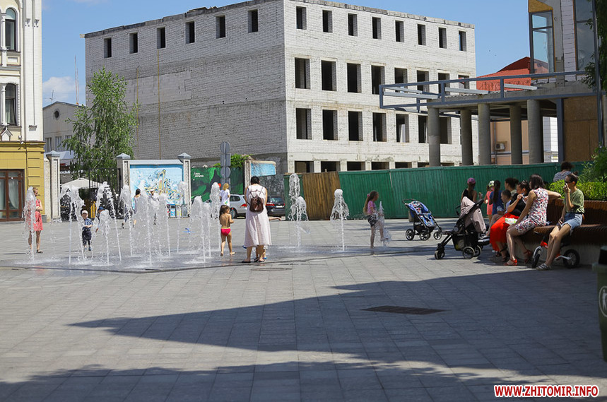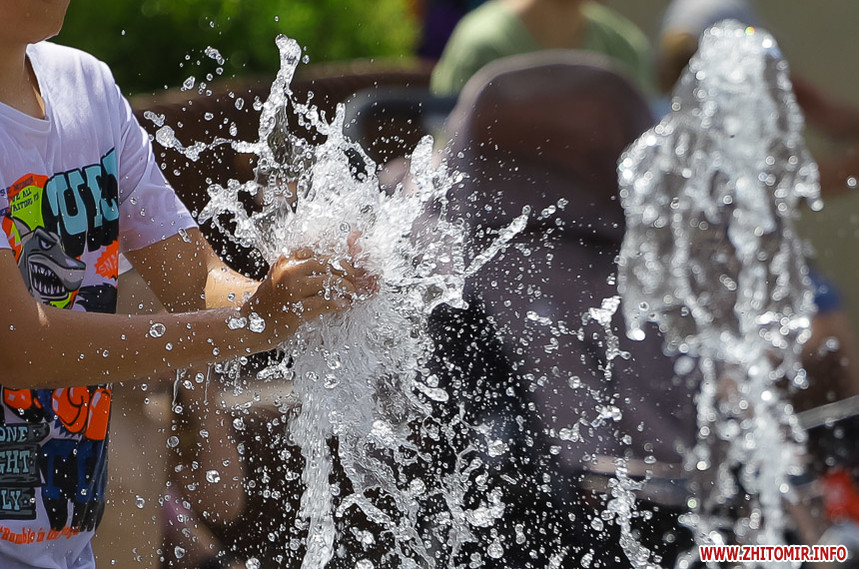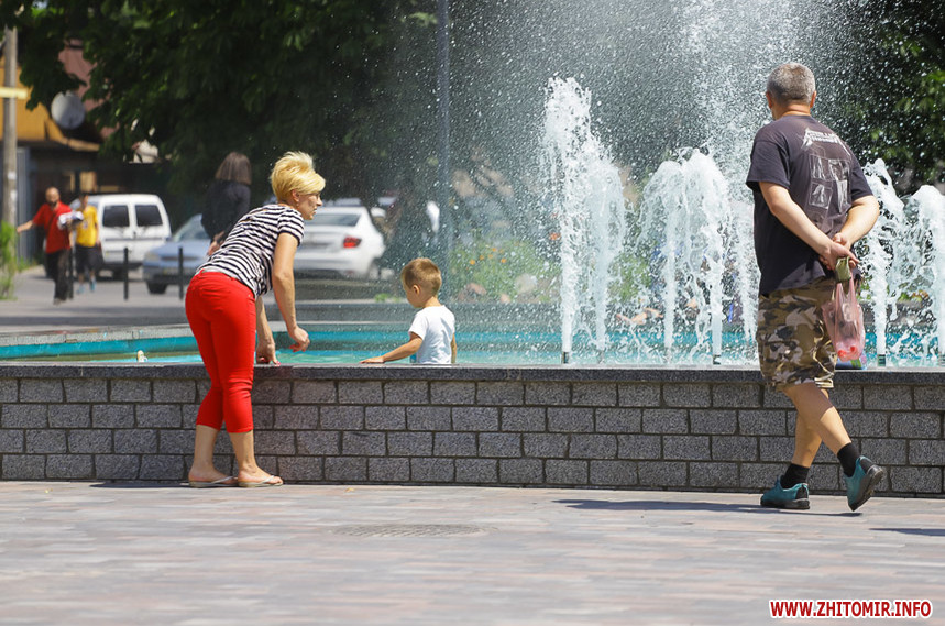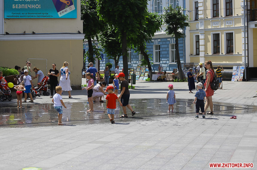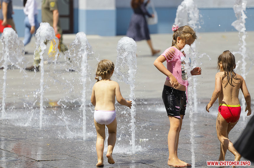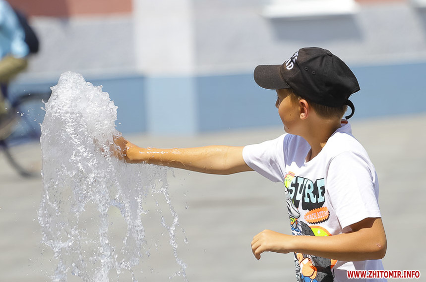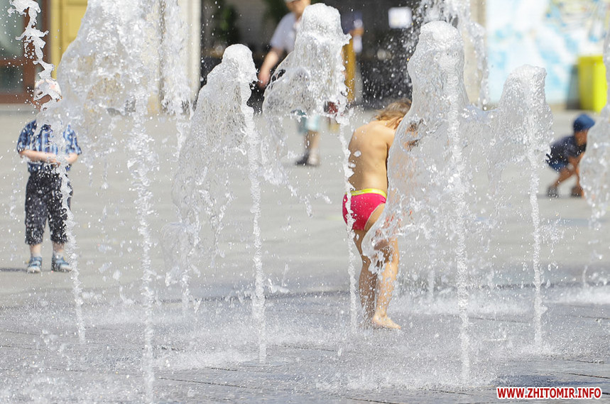 У перший день липня у Житомирі з усіх фонтанів працює лише два, і в обох цих фонтанах з задоволенням купаються діти.
