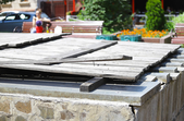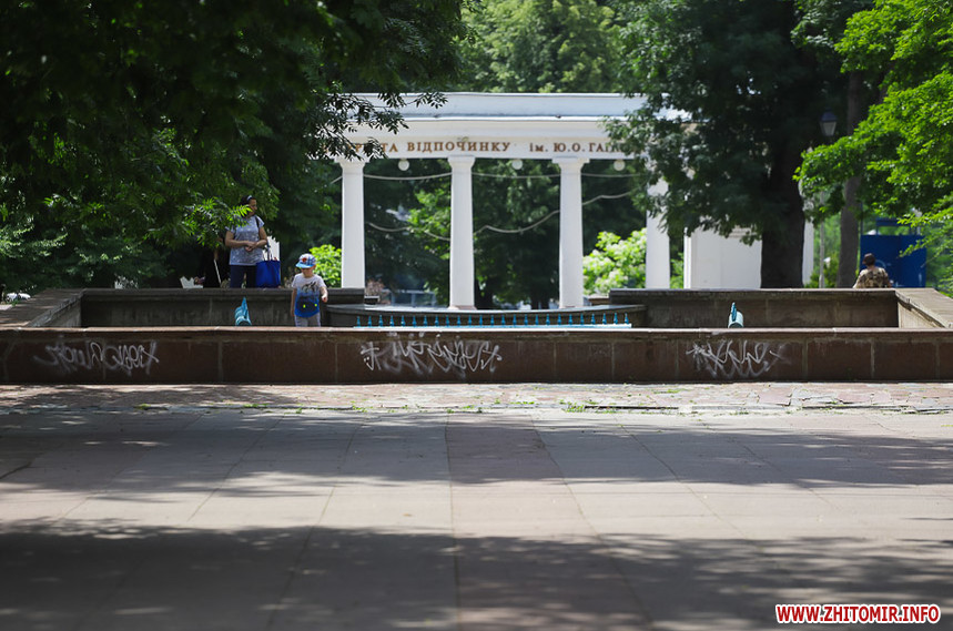 У парку відпочинку ім. Гагаріна не працює жоден фонтан. Нижній фонтан як і був навесні, побитий, деякі елементи встигли поржавіти, середній - забитий дошками вже багато років