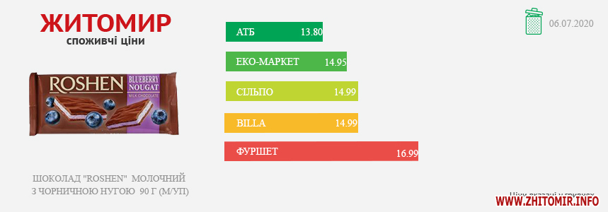 МОНІТОРИНГ ЗДІЙСНЕНО МЕТОДОМ КОНТРОЛЬНОЇ ЗАКУПІВЛІ, У МІСЦЯХ ПРОДАЖУ: AТБ, пр. Миру, 15 А, Billa, пр. Миру, 15, Сільпо, майдан Житній ринок, 1, ЕКО-маркет, вул. Мала Бердичівська, 2/7, Фуршет, вул. Вітрука, 9 а
