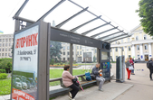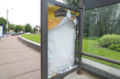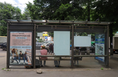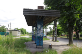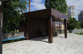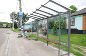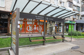 На майдані Смолянському встановлена нова, сучасна зупинка, але там уже відсутні два скла та пошкоджений плакат на честь воїнів АТО.