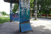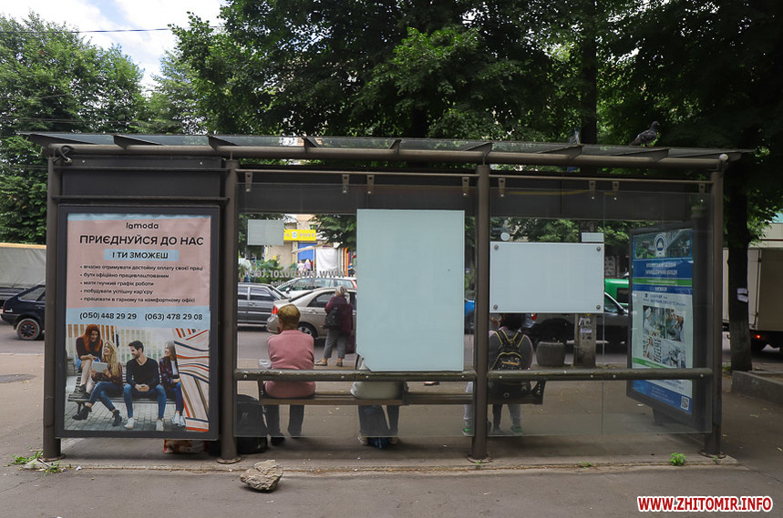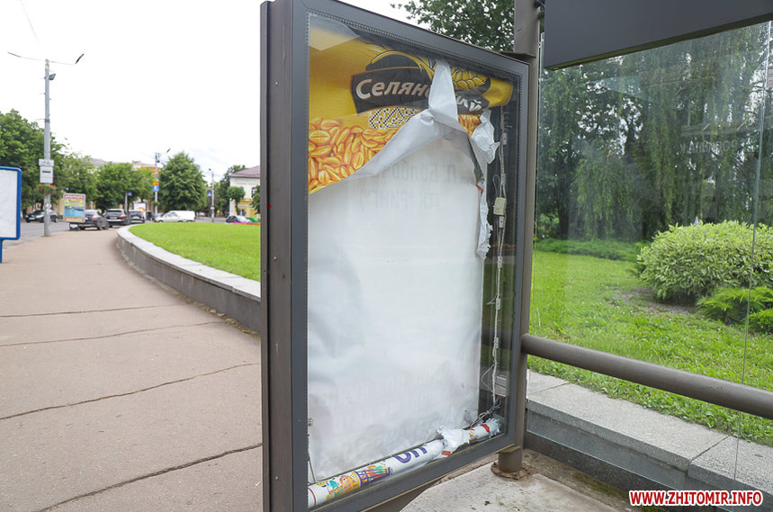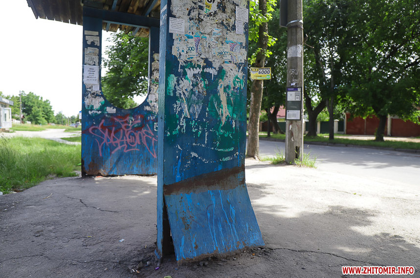 Бруд, поламані лавки, поржавілі USB-виходи, розбите скло та пошкоджені плакати з «Обличчями миру» – такі «риси» притаманні для більшості зупинок громадського транспорту по вулицях Великій Бердичівській та Івана Гонти у Житомирі.