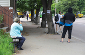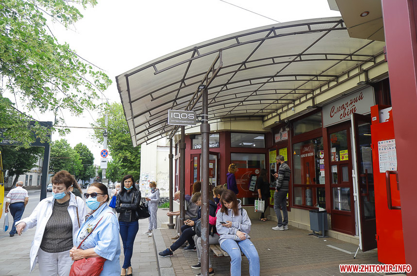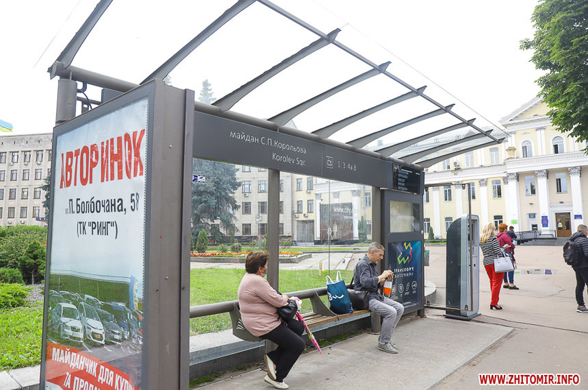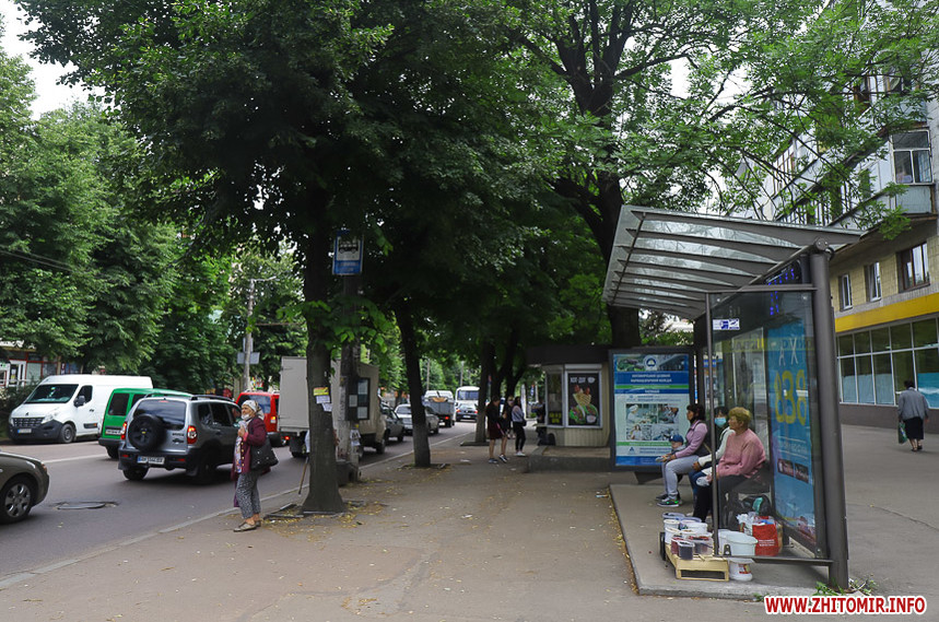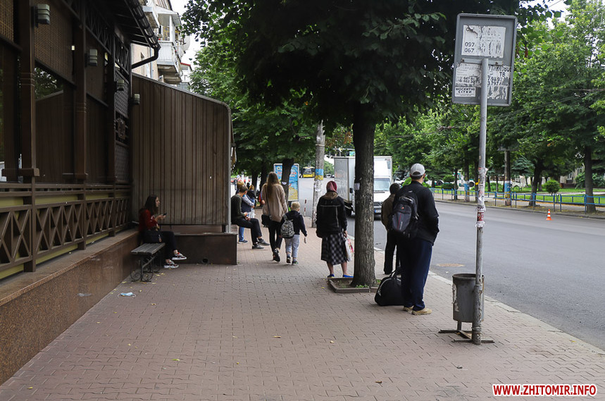 «Проінспектувавши» місця очікування тролейбусів і маршруток 9 липня, можемо відзначити, що накриття та лавки є далеко не на кожній зупинці, навіть у центрі міста. Деякі зупинки можна опізнати лише по знаку – ні накриття, ні лавки на них немає. На інших зупинках хоч і є лавки, але їх не вистачає, тому люди сидять на парапетах.