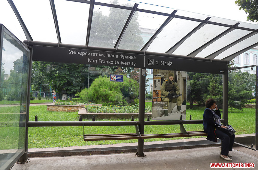Нагадаємо, у квітні 2018 року на зупинках громадського транспорту в рамках проєкту «Обличчя миру» в Житомирі розклеїли 30 світлин військовослужбовців 95-ї та 80-ї бригад.