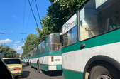 На вулиці Київській у Житомирі у вечірню «годину пік» 10 липня зупинилися тролейбуси: близько 8-ми одиниць електротранспорту вишикувалися в ряд.