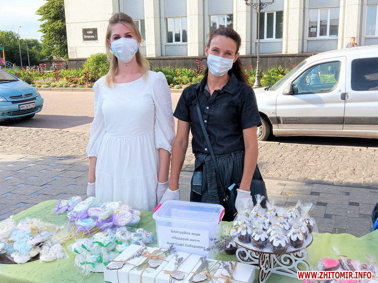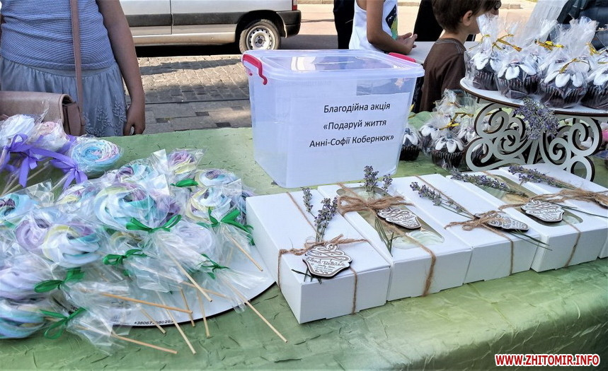 У Бердичеві 19 липня на центральній площі влаштували благодійну акцію на підтримку юної бердичівлянки Анни-Софії Кобернюк. Дівчинка бореться з саркомою Юінга.