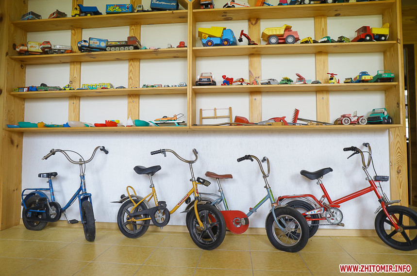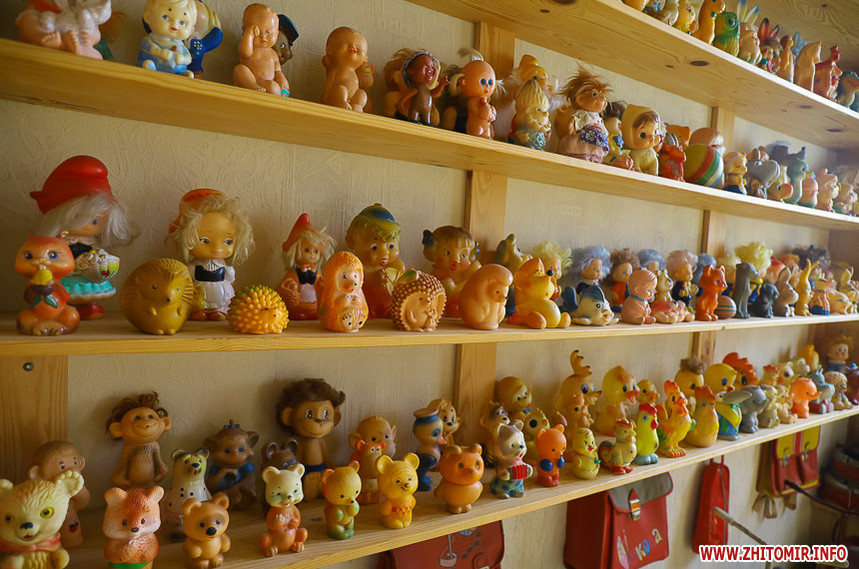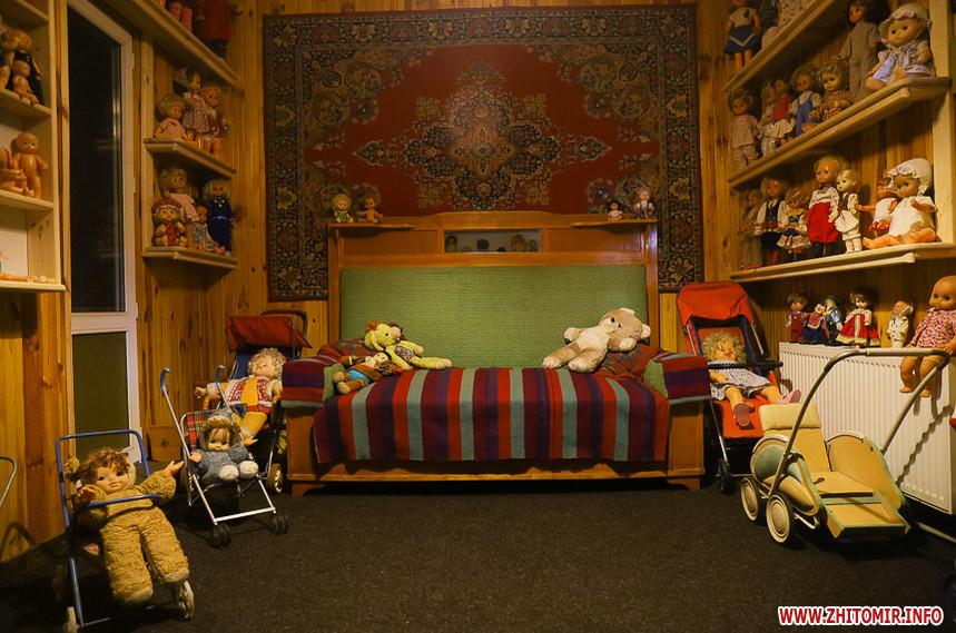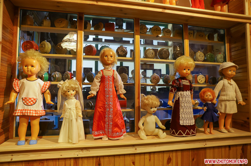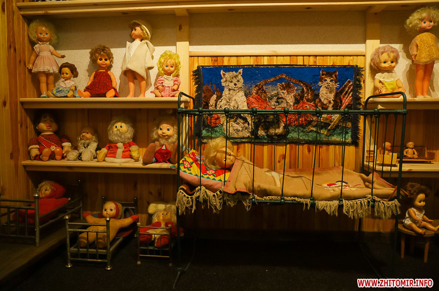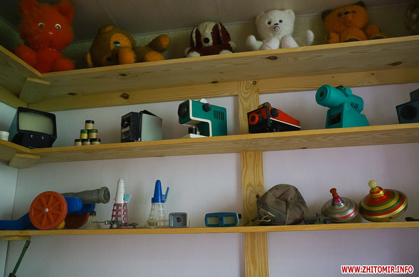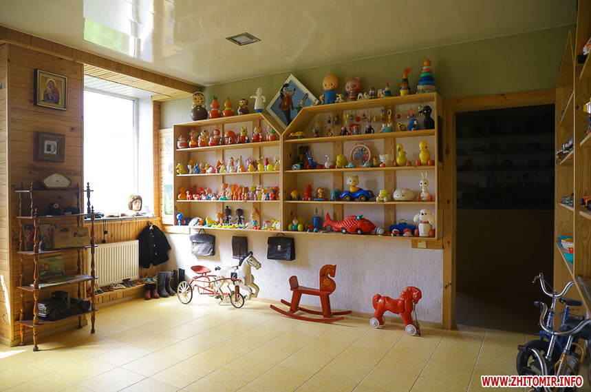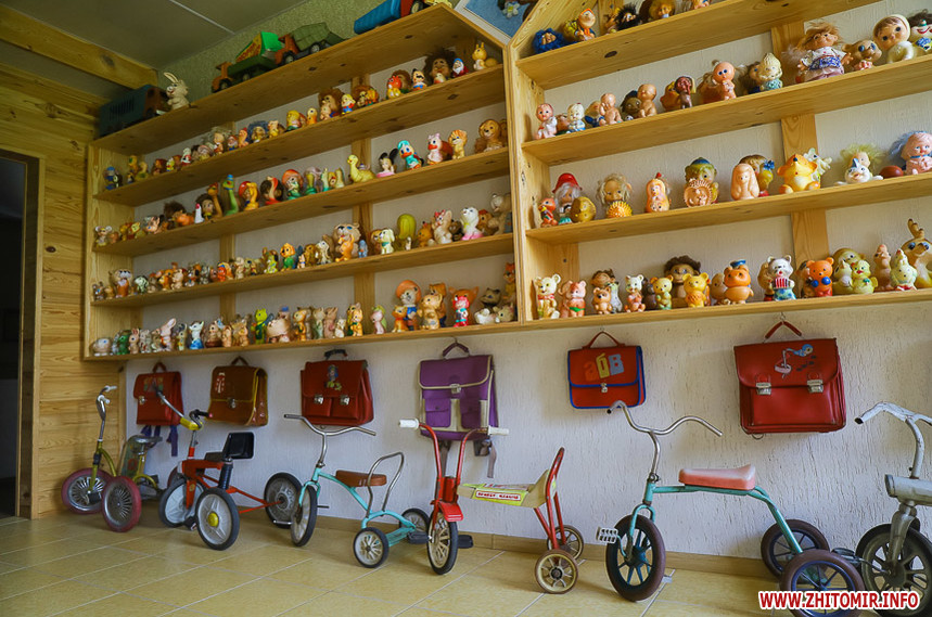Тут більше чотирьох тисяч експонатів у трьох залах. Найстаршій іграшці у музеї – близько 150 років, а «наймолодшій» – близько 30. Окрім іграшок тут є дитячі ліжечка, велосипеди, ролики, сумки, форма, перші електронні ігри і навіть «графічний планшет», а ще фільмоскопи, старовинні фотоапарати, старі дореволюційні світлини, дитячі швейні машинки, холодильники і посуд та багато іншого. Окрім експонатів з усієї України та інших пострадянських країн, тут багато екземплярів «родом» з нашої області: є експонати, випущені на житомирській музичній фабриці, малинському заводі «Прожектор», житомирській ліжковій фабриці, на житомирській фабриці іграшок, житомирській фабриці сувенірів.