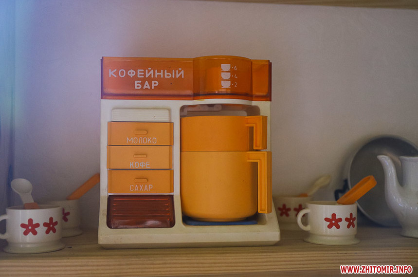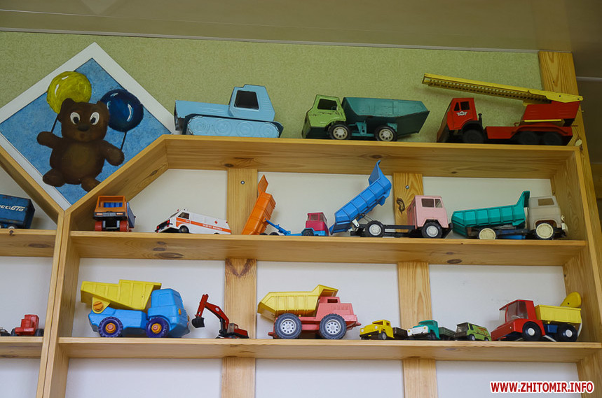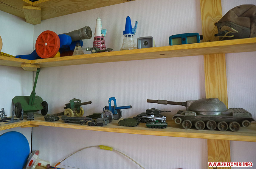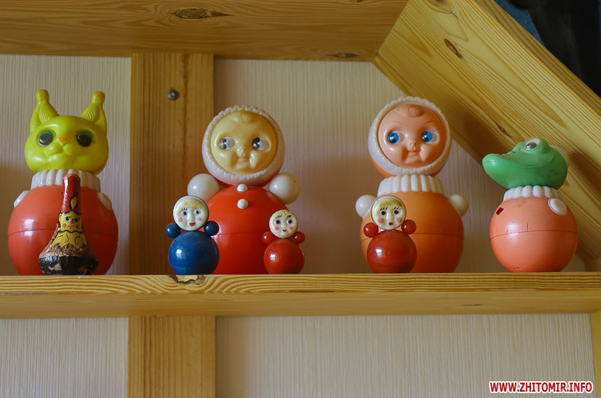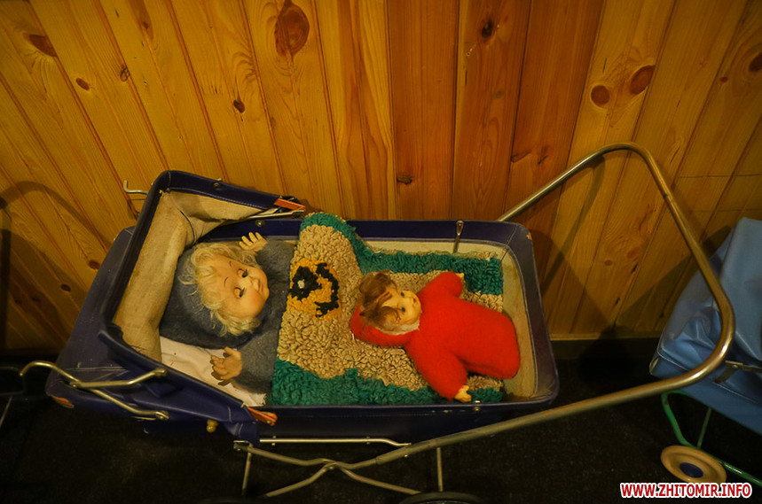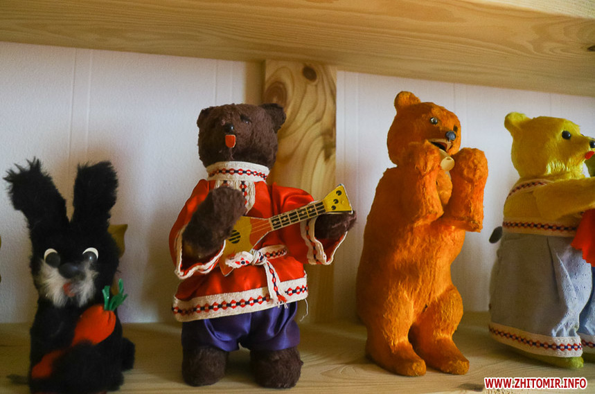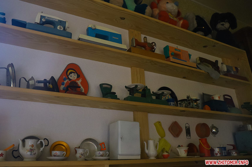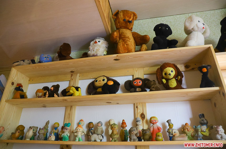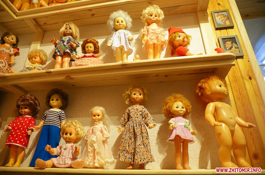 Тут більше чотирьох тисяч експонатів у трьох залах. Найстаршій іграшці у музеї – близько 150 років, а «наймолодшій» – близько 30. Окрім іграшок тут є дитячі ліжечка, велосипеди, ролики, сумки, форма, перші електронні ігри і навіть «графічний планшет», а ще фільмоскопи, старовинні фотоапарати, старі дореволюційні світлини, дитячі швейні машинки, холодильники і посуд та багато іншого. Окрім експонатів з усієї України та інших пострадянських країн, тут багато екземплярів «родом» з нашої області: є експонати, випущені на житомирській музичній фабриці, малинському заводі «Прожектор», житомирській ліжковій фабриці, на житомирській фабриці іграшок, житомирській фабриці сувенірів.