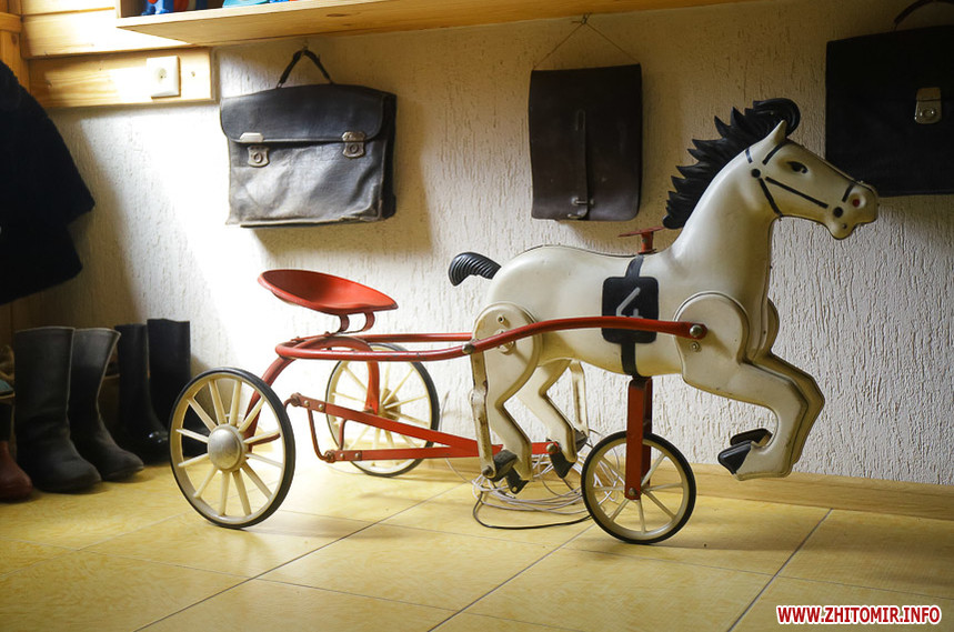 «Це унікальна колекція, в Україні більше такої немає, і такого музею з такою експозицією більш немає. Почалося все з маленької сокири. Це – дитяча іграшка 18 сторіччя, яку я купив у Львові 11 років тому. Тоді, коли я з’ясував, що це – дитяча іграшка, виникла ідея збирати два напрямки: мініатюрний інструмент та дитячі іграшки. Спочатку планувався музей іграшок. Але велосипеди, взуття, грілки та інші дитячі речі – це вже «Світ дитинства». Це окремий музей, який не пов’язаний з «Ремісничим двором», бо немає відношення до ремесл, але ота іграшкова сокира – то саме зародження ремесел, зародження маленького майстра, який навчався працювати з сокирою», – розповідає засновник Народного музею історії ремесел «Ремісничий двір» та «Світ дитинства» Федір Євтушенко.