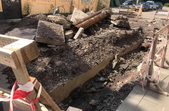 Ремонтні роботи розпочали від пішохідної вулиці Михайлівської, де, аби дістатися до підземних комунікацій, вже зняли частину нової плитки.