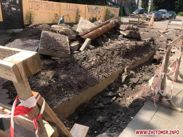 27 липня на провулку Скорульського в центрі Житомира комунальники почали міняти теплотрасу, яку не ремонтували роками. Проте провулок дуже вузький, тож важкій техніці ніде розвернутися.
