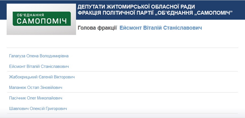 Нагадаємо, на місцевих виборах 2015 року Віталій Ейсмонт очолював список кандидатів від Об’єднання «Самопоміч» й зараз є керівником фракції цієї партії в Житомирській обласній раді. Приватне підприємство Ейсмонта ТПК «Медвейс» бере активну участь в тендерах й у 2019 році підписало 15 договорів вартістю 3 млн 117 тис. 228 грн 91 коп.