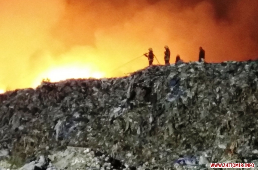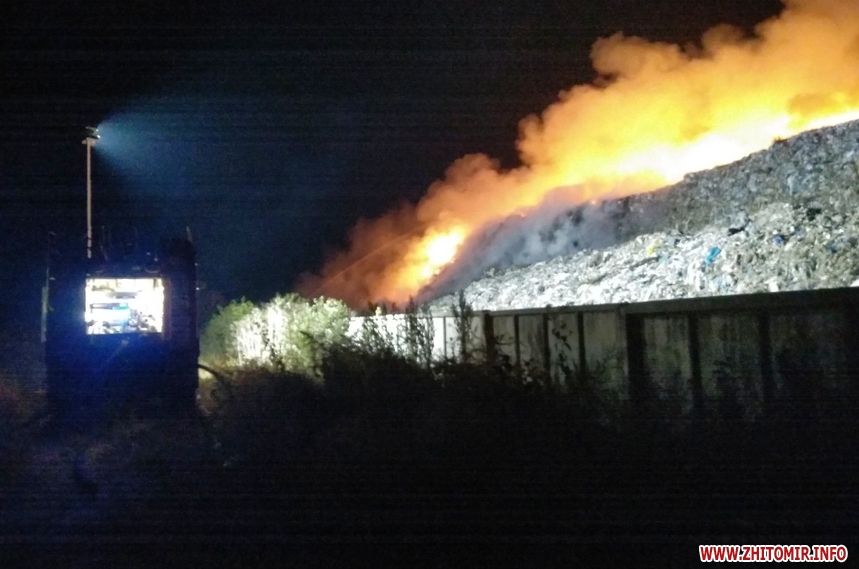 Пізно ввечері 25 вересня у Житомирі вкотре зайнялося міське сміттєзвалище. Рятувальники цілу ніч гасили пожежу. Станом на ранок 26 вересня ліквідація загоряння триває.