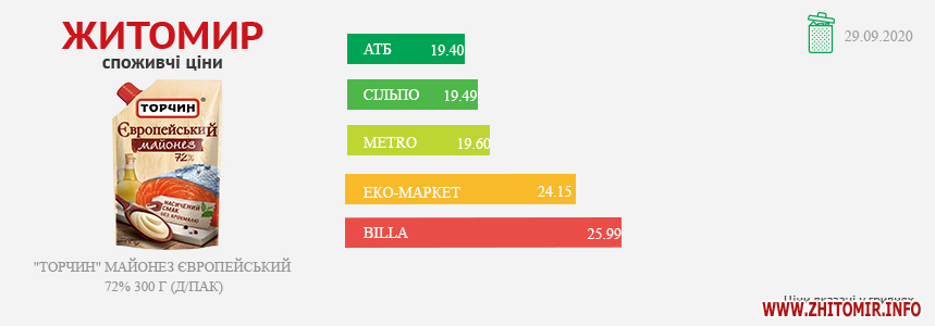 МОНІТОРИНГ ЗДІЙСНЕНО МЕТОДОМ КОНТРОЛЬНОЇ ЗАКУПІВЛІ, У МІСЦЯХ ПРОДАЖУ: AТБ, пр. Миру, 15 А, Billa, пр. Миру, 15, Сільпо, майдан Житній ринок, 1, ЕКО-маркет, вул. Мала Бердичівська, 2/7, Metro, пр. Незалежності, 55-В