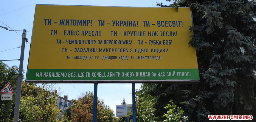 Нагадаємо, білборди та сітілайти, які стали причиною відкриття кримінального провадження, потрапили в наш серпневий фоторепортаж про політичну рекламу в Житомирі.