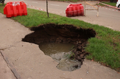 8 червня на вулиці Великій Бердичівській у Житомирі провалився асфальт, у яму потрапила вантажівка.