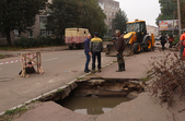 «В неділю прийшло повідомлення на диспетчерську службу, що відбувся провал на вулиці Гагаріна в районі будинку 24, виїхала аварійно-диспетчерська служба разом з «аварійкою» мережі каналізацій і виявили провал на колекторі діаметром 600. Протягом години, поки хлопці огороджували та виставляли знаки, сталося ще два провали, тобто колектор майже протяжністю 100 метрів повністю вийшов з ладу. На даний час бригада працює, зараз ми одне з проваль розчистили, будемо прокладати нову трубу. Намагатимемося виконати роботи найближчим часом, тобто десь за тиждень ми перекладемо цей колектор. Будемо йти по максимуму до Святослава Ріхтера, бо глибина колектору там близько 8-10 метрів. Зношеність, як вибачите, 100%, у деяких місцях колектору немає, воно йде по ґрунту, тобто як підземна річка», – розповів головний інженер водоканалу Сергій Єрьомін.
