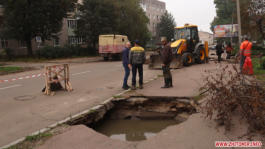 Нагадаємо, 8 жовтня внаслідок пориву каналізаційного колектору на вулиці Фещенка-Чопівського у Житомирі посеред дороги утворилося провалля, рух транспорту вулицею призупиняли.