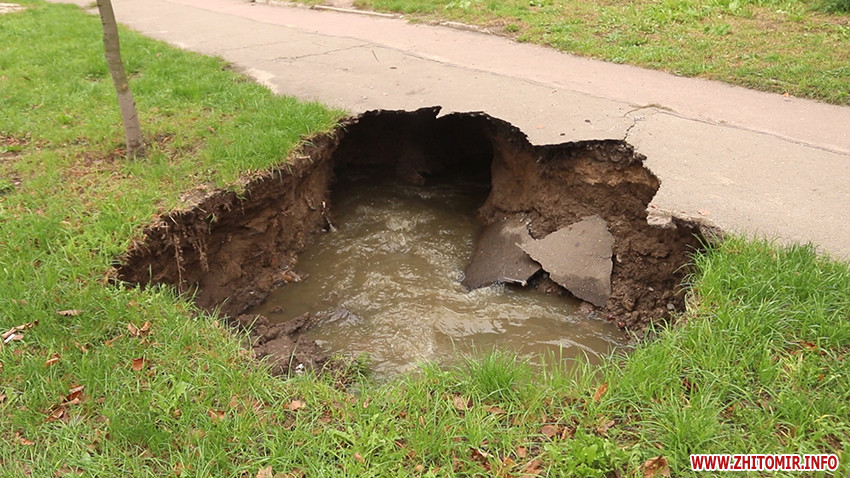 У Житомирі на вулиці Гагаріна у неділю 11 жовтня стався порив каналізаційного колектору, внаслідок чого на тротуарі утворилося кілька проваль. Сьогодні на місці працює бригада водоканалу, яка ліквідовує наслідки аварії. Частину вулиці для проїзду перекрили.