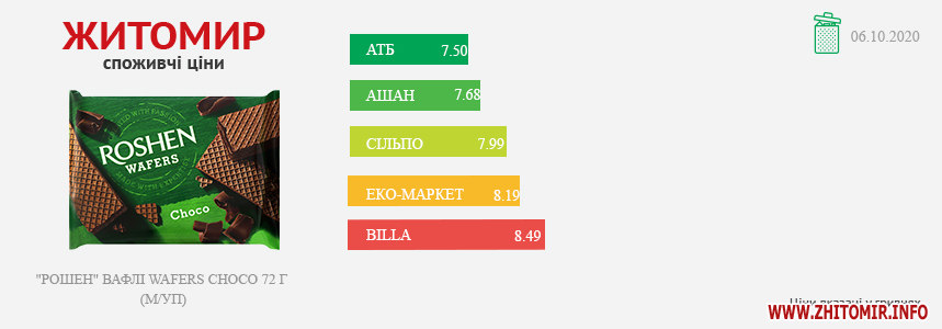 МОНІТОРИНГ ЗДІЙСНЕНО МЕТОДОМ КОНТРОЛЬНОЇ ЗАКУПІВЛІ, У МІСЦЯХ ПРОДАЖУ: AТБ, пр. Миру, 15 А, Billa, пр. Миру, 15, ЕКО-маркет, вул. Мала Бердичівська, 2/7, Ашан, вул. Київська, 77, Сільпо, майдан Житній ринок, 1