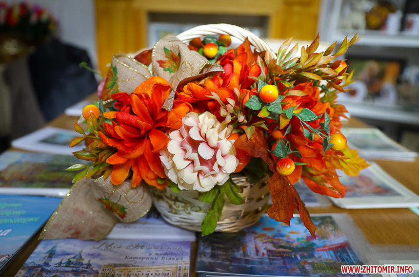 «Це інформаційно-сувенірний магазинчик. Маємо листівки, брошури про Житомир. Наш відомий краєзнавець Георгій Павлович Мокрицький надав свою літературу про наш край. Також ми налагоджуємо співпрацю з екскурсоводами, аби надавати їхні контакти туристам і зацікавленим житомирянам. Є у нас література письменників Житомирщини. Невдовзі її стане ще більше. Загалом уся наша продукція стосується Житомира та області», – зауважує Валентина Романюк.