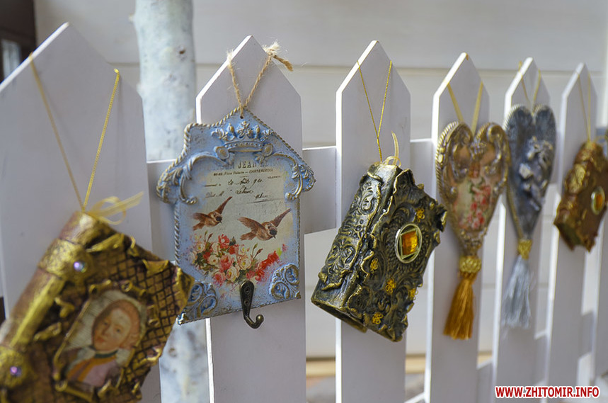 Усі вироби виготовлені руками житомирських майстрів. Авторкою багатьох робіт є й сама Валентина Романюк – майстриня декору та художньої творчості.