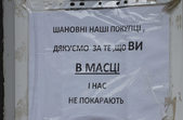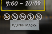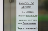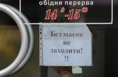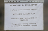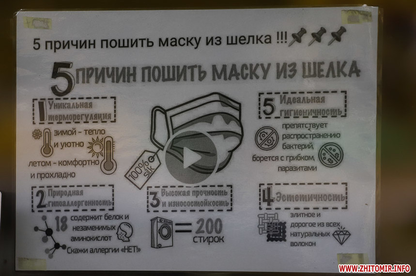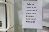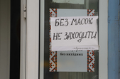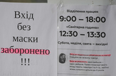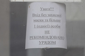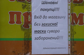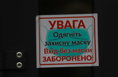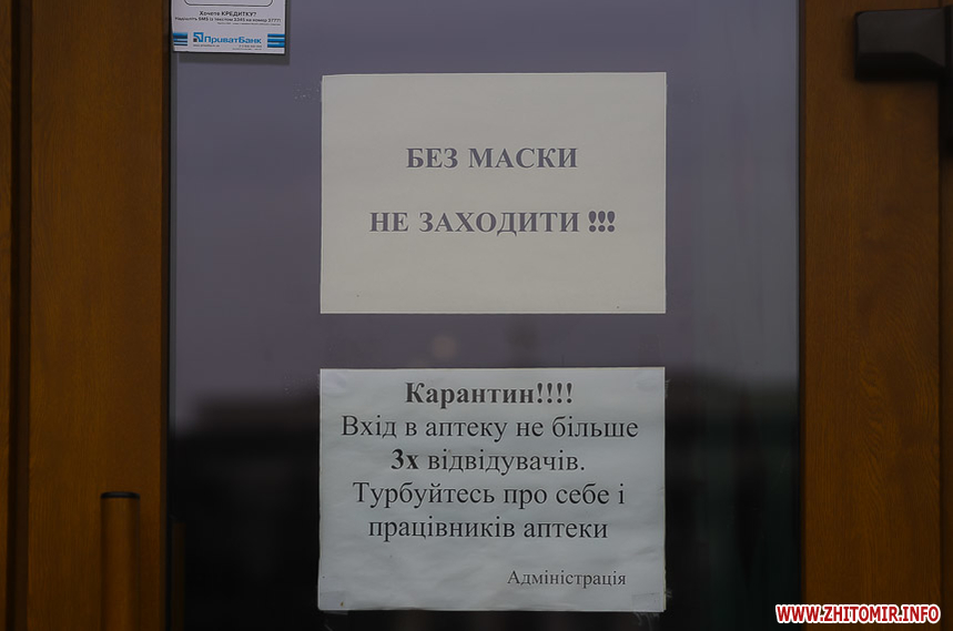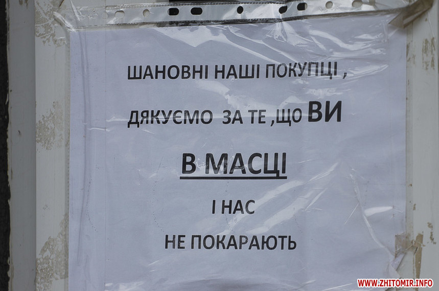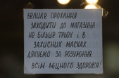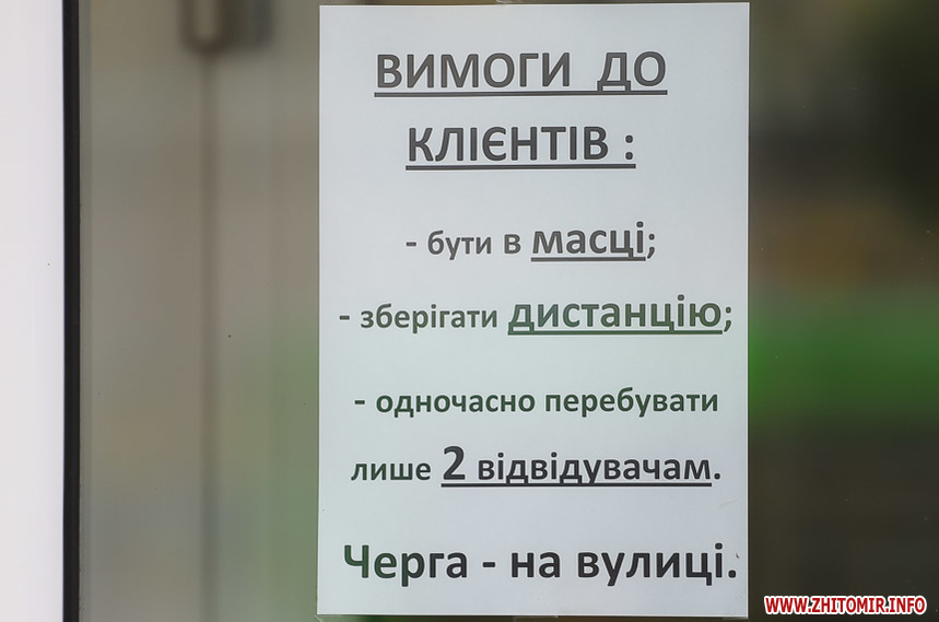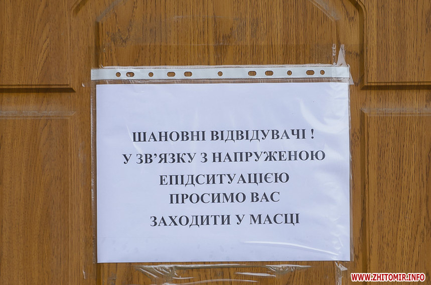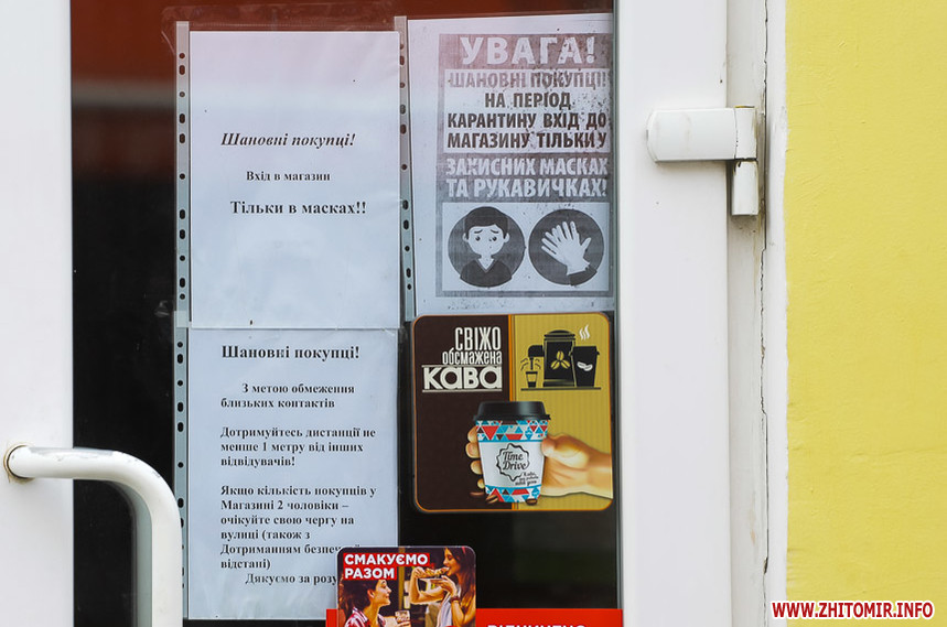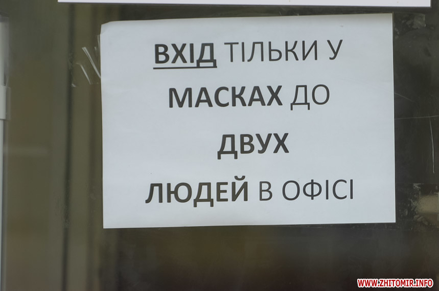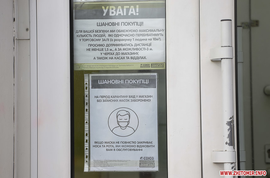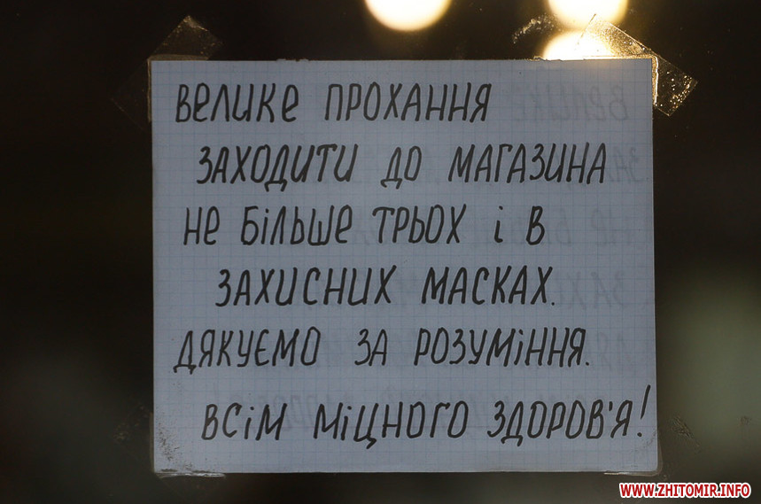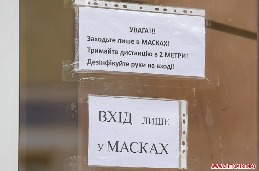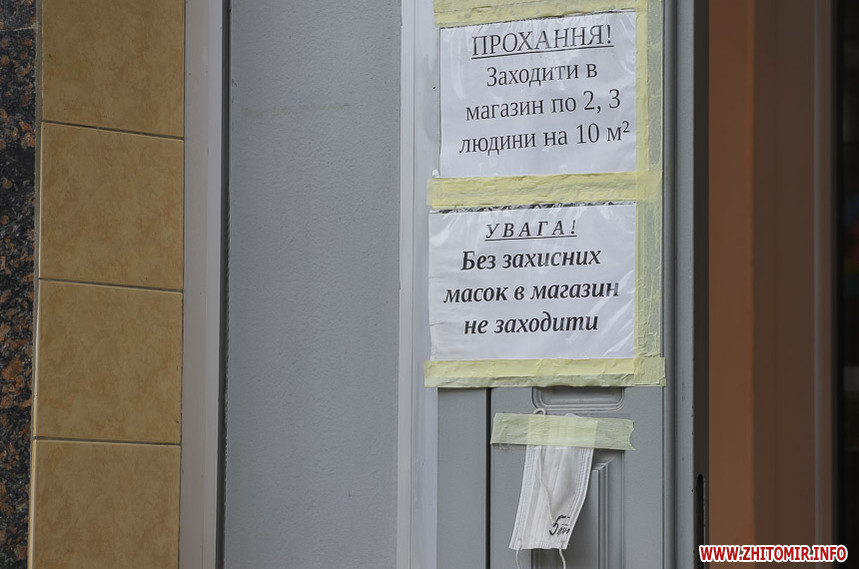 Останнім часом епідеміологічна ситуація у Житомирі та області погіршилася, то ж у зв'язку з цим адміністрації багатьох закладів почали більше звертати увагу на те, як їх відвідувачі дотримуються вимог щодо використання масок. За нашими спостереженнями, якщо порівнювати з початком карантину, «протикоронавірусні» написи стали змістовнішими, більш різноманітними та наполегливими. Дехто клеїть на вхідних дверях кольорові наліпки, хтось вивішує роздруковані заклики, інші пишуть застереження від руки. У деяких закладах відвідувачів закликають не панікувати, просять турбуватися про інших, дякують за одягнуту маску, а дехто суворо попереджає, що вхід до магазину без захисної маски заборонений.