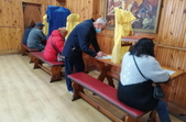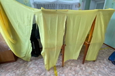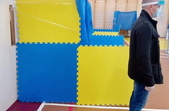 Згодилося все: столи, стільці, парти, тенісні столи, спортивний інвентар, драбини. Все це завішували шматками тканини кольорів державного прапора.