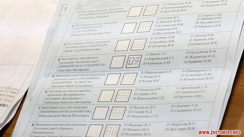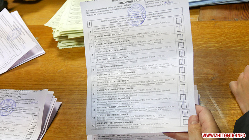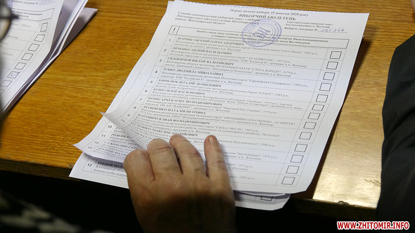 Зазначимо, що житомиряни на місцевих виборах 25 жовтня 2020 року отримали чотири бюлетені для голосування: за міського голову, за депутатів міської та обласної рад і за депутатів Житомирської районної ради