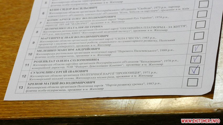 У Житомирі на виборчій дільниці 181354, звідки Житомир.info вів пряму трансляцію підрахунку голосів, кілька десятків бюлетенів визнали недійсними.