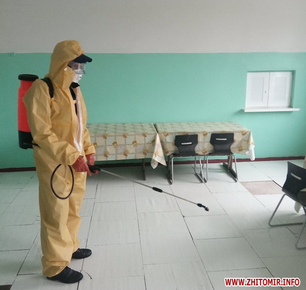 Також дезінфекцію проводили у Народичах та Коростишеві.