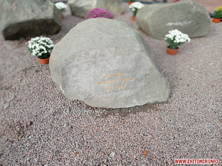 «Повідомляємо, що дозвіл на встановлення комплексу пам’ятних знаків у вигляді каміння та погодження топонімічного напису на ньому за адресою: м.Житомир, провулок Прудний, 13, виконавчим комітетом Житомирської міської ради не надавалися... З метою усунення порушень листом департаменту містобудування та земельних відносин Житомирської міської ради від 12.11.2020 №27/217 зобов’язано виробниче житлово-ремонтне експлуатаційне підприємство №4 здійснити демонтаж пам’ятних знаків у вигляді каміння з топонімічним написом, що розміщені в межах території благоустрою між провулком Прудним та вулицею Покровською в м.Житомирі в найкоротший термін», йдеться у листі, який оприлюднив Швецов.