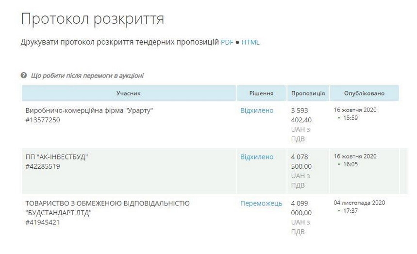 - ПП “Ак-Інвестбуд” з пропозицією у 4 млн 78 тис. 500 грн;