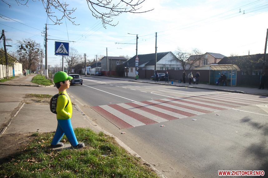 Уздовж вулиці Чуднівської знаходяться кілька скульптур у вигляді хлопчиків з рюкзачками і написом “Увага”. Вони встановлені з обох боків пішохідних переходів і мають на меті привернути увагу водіїв, щоб ті зменшили швидкість. Проте, місцеві водії вже звикли і мало хто реагує на штучних “хлопчаків”.
