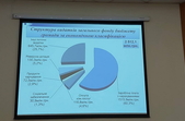 «Якщо говорити про структуру видатків в питомій вазі, то 1,5 млрд грн, 60% бюджету – це заробітна плата. Оплата комунальних послуг становить трохи менше ніж 5%, а 3-4 роки тому ми мали до 10%. В структурі головних розпорядників коштів, яких є 14, найбільшу питому вагу займає основний розпорядник коштів – 1 млрд 492 млн грн – департамент освіти. Всі видатки бюджету розподілені на виконання заходів цільових програм та утримання бюджетних установ», - наголосила директор фіндепартаменту.