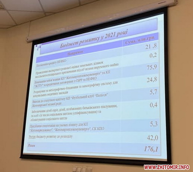 Як повідомляв Житомир.info, на сайті міської ради 7 грудня 2020 року оприлюднили проєкт бюджету Житомирської міської територіальної громади на 2021 рік. Бюджет Житомирської територіальної громади на 2021 рік планують розглядати на сесії міської ради 17 грудня.